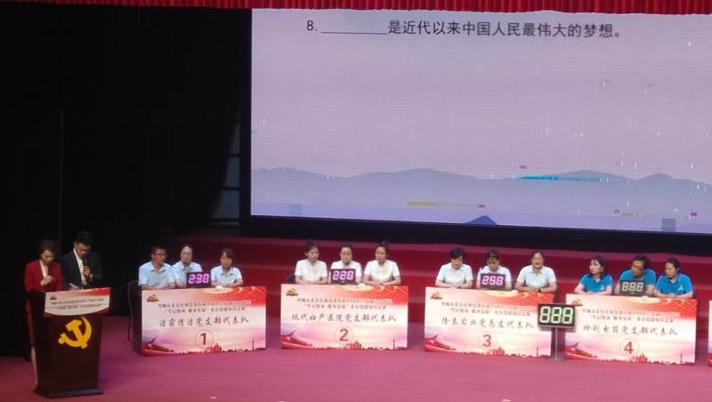 不忘初心跟黨走,牢記使命譜華章!為了慶祝中國共產黨成立99周年,6月28日下午,晉城市非公企業(yè)黨委在澤州天泰錦辰煤業(yè)有限公司職工文化宮進行了一場別開生面的“牢記使命 服務發(fā)展”黨建知識競賽。潔霸清潔黨支部、現(xiàn)代婦產醫(yī)院黨支部、隆泰實業(yè)黨總支、神利電器黨支部、眾宸工貿黨支部和蔬菜公司黨支部等六支代表隊在此激戰(zhàn)正酣,各代表隊你追我趕,斗志昂揚,不甘落后,力爭上游,最終,我公司支部代表隊榮獲比賽三等獎。
