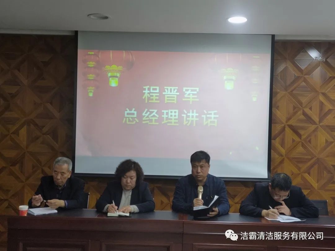 最后,公司總經(jīng)理程晉軍作了重要講話,對新的一年里組織架構(gòu)、產(chǎn)教融合、建立洗衣廠、創(chuàng)建勞務(wù)品牌、建立大運營中心、工程部市場化運作、技能培訓、提高用工人數(shù)、承包養(yǎng)老院、建立客戶管理系統(tǒng)等十項工作作了安排部署并提出了新的希望。