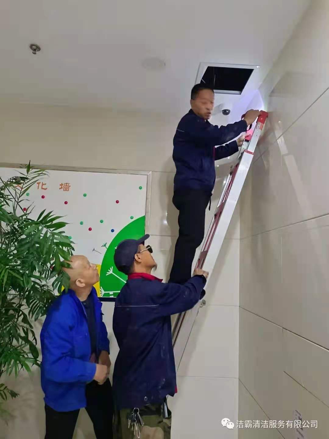 工程部的李新芳和郭軍田兩位師傅,有著豐富的工作經(jīng)驗(yàn),他們順著污水主管道,敲敲打打,根據(jù)聲音辨別堵塞部位。尋找病癥部位比較容易,但治療起來(lái)太艱難。管道在二樓與三樓之間,A單元樓下農(nóng)商銀行的天花板里。施工場(chǎng)地離地面四五米高,施工要爬高上梯且空間狹窄逼仄,天花板一處開口勉強(qiáng)能容一個(gè)人鉆進(jìn)去,給施工造成很大困難。