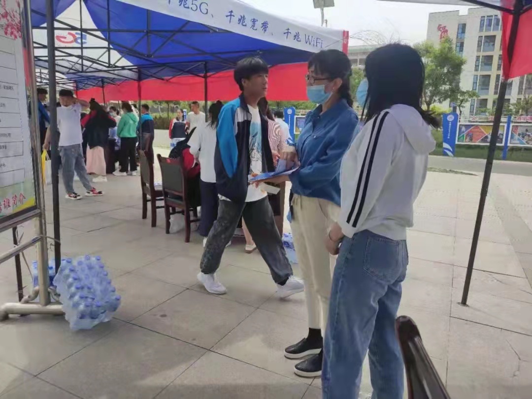 一大早,潔霸公司員工司夢(mèng)琴、王敏杰、楊凡等人來(lái)到活動(dòng)現(xiàn)場(chǎng),在學(xué)校工作人員的協(xié)助下安放宣傳版面,放置招生簡(jiǎn)章,為即將開(kāi)始的宣傳活動(dòng)做準(zhǔn)備;顒(dòng)中,潔霸公司員工耐心細(xì)致的為學(xué)生及學(xué)生家長(zhǎng)講解新專(zhuān)業(yè)的學(xué)習(xí)內(nèi)容、專(zhuān)業(yè)新生的入學(xué)待遇以及專(zhuān)業(yè)畢業(yè)生的就業(yè)情況等。潔霸公司董事長(zhǎng)程晉軍百忙之中也親臨活動(dòng)現(xiàn)場(chǎng)關(guān)心活動(dòng)開(kāi)展情況。
