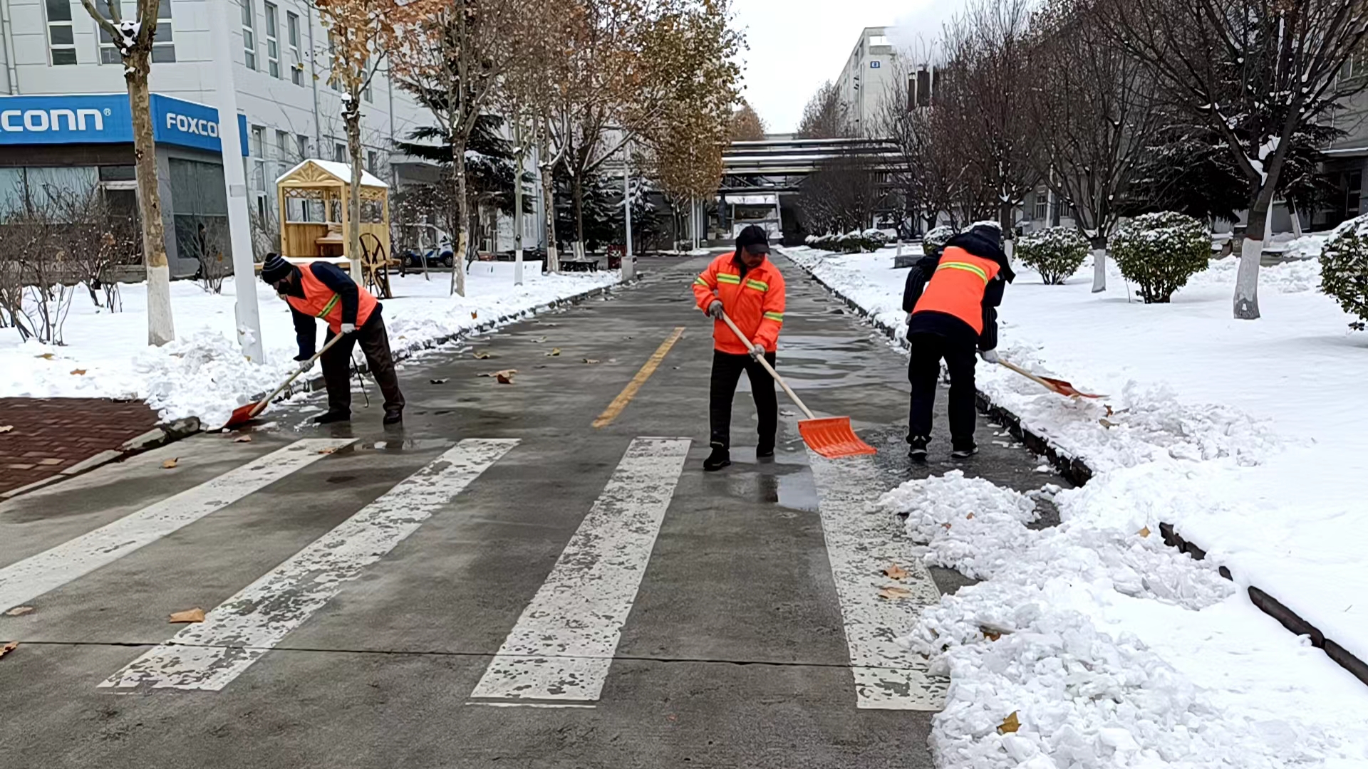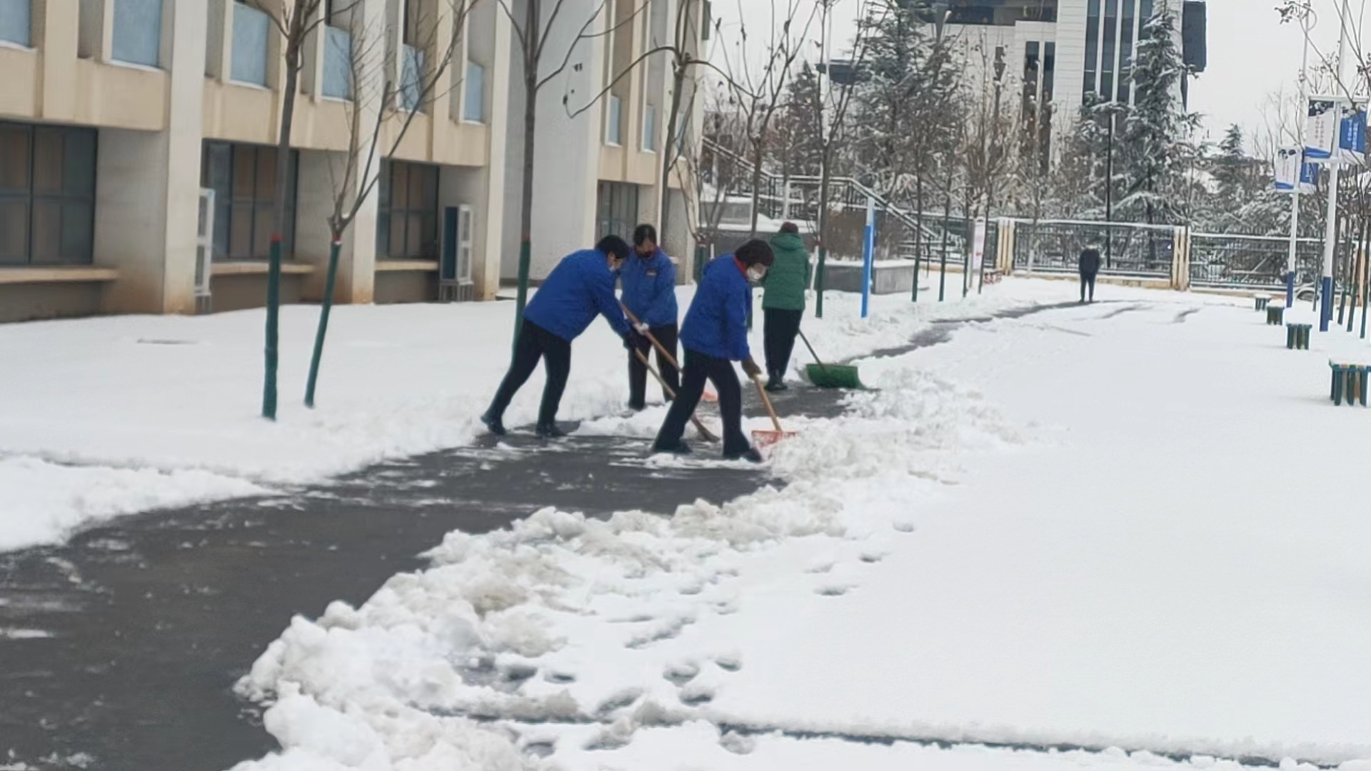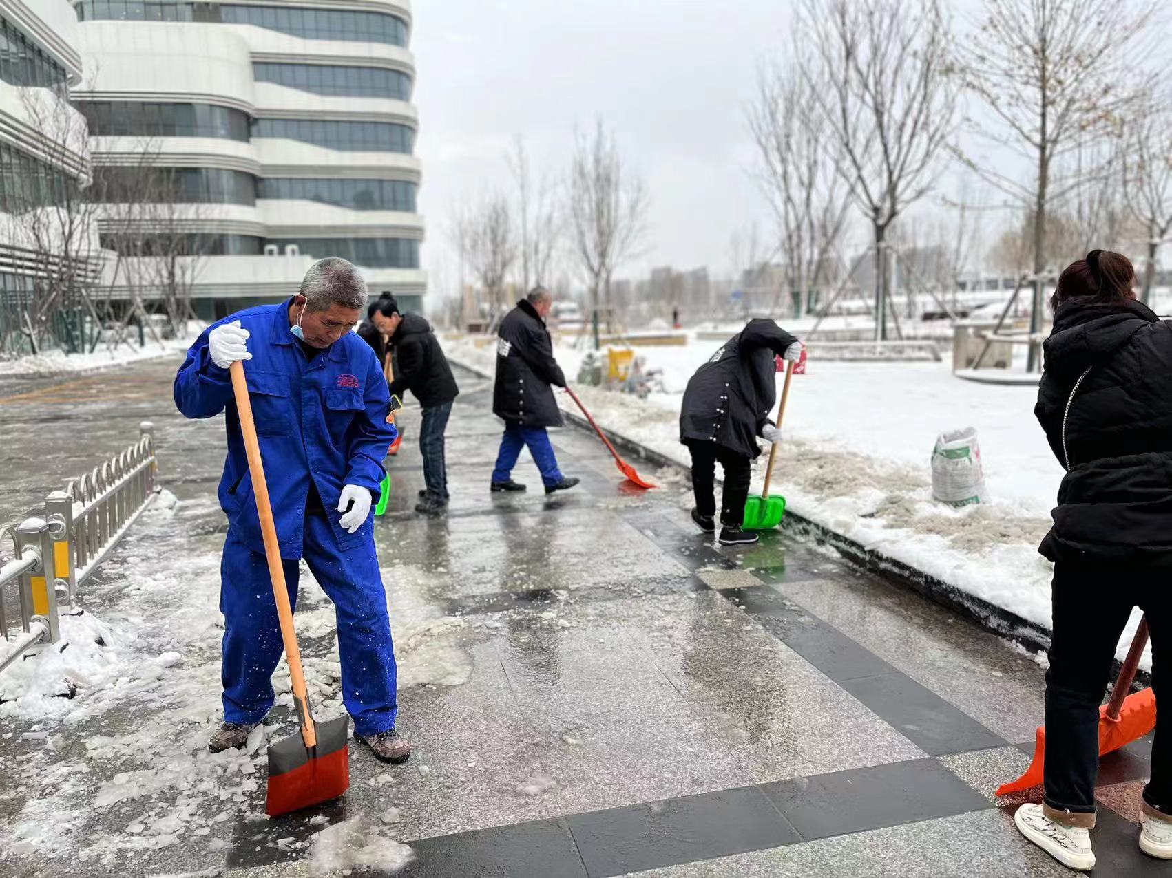 為保障群眾的安全以及道路的通暢,為廣大市民提供一個安全、便捷的出行環(huán)境,11日一大早,公司各個項目部、單位服務(wù)點的員工以雪為令,聞雪而動積極行動起來,投身到清掃積雪的活動中。下雪后的天氣雖然寒冷,但也無法阻擋大家掃雪的熱情,同志們個個干勁滿滿——有的用除雪鏟推,有的拿鐵鍬鏟,有的拿笤帚掃……大家分工明確,配合默契,各個掃雪現(xiàn)場都是熱火朝天,為群眾安全出行開辟出了一條“暖心路”。充分彰顯了潔霸服務(wù),展示了潔霸形象。