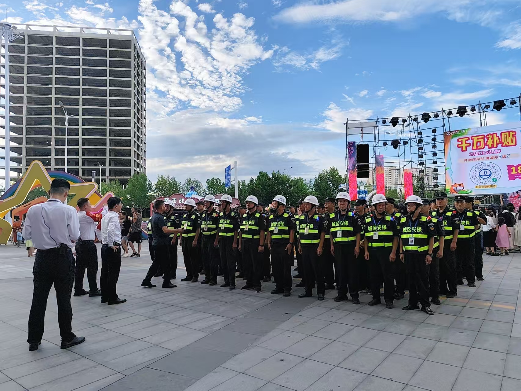 活動前夕,城區(qū)保安公司提前謀劃并多次與萬達商場負責(zé)人對接,對活動現(xiàn)場及周邊進行多次實地詳細勘察,綜合分析研判活動規(guī)模、表演區(qū)域及人流車流等要素情況,制定了周密的安保方案,抽調(diào)50名經(jīng)驗豐富、訓(xùn)練有素的保安人員組成專項執(zhí)勤隊伍,采取定點執(zhí)勤、流動巡查的方式,合理布控保安力量,明確各崗位職責(zé)與應(yīng)急處置流程,分崗定責(zé),壓實責(zé)任,確;顒尤痰陌踩院涂煽匦。組織全體執(zhí)勤人員進行崗前培訓(xùn),重點強調(diào)人流疏導(dǎo)技巧、突發(fā)事件應(yīng)對方法以及服務(wù)禮儀規(guī)范,確保每個人都熟悉崗位要求,以最佳狀態(tài)投入執(zhí)勤工作。
